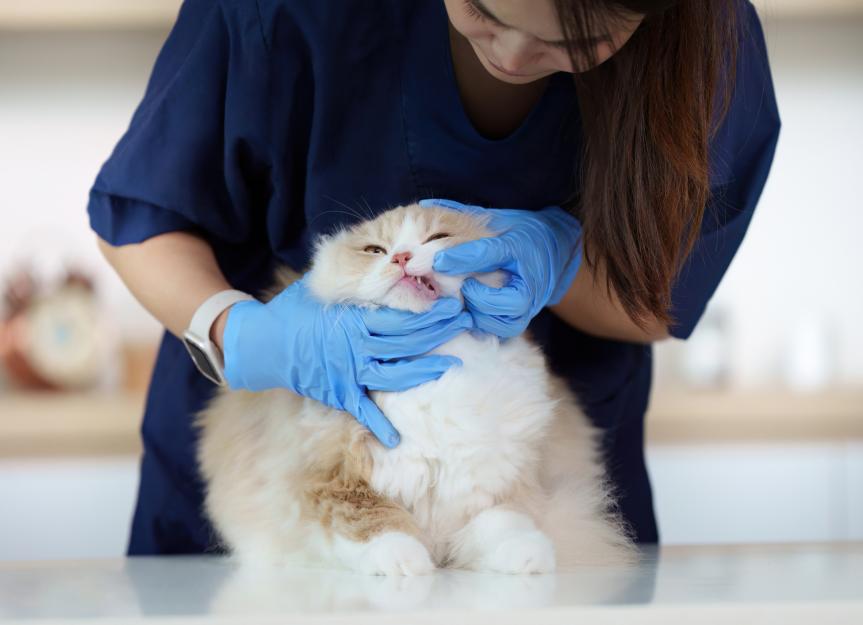 Does your cat act like their mouth is bothering them? Are they tilting their head to the side or trying to eat their kibble without chewing?