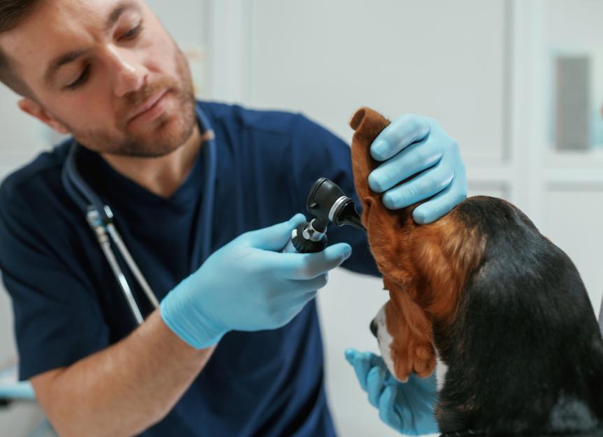 To treat dog ear infections, a veterinarian will first look in your dog’s ear with an otoscope, which is a handheld device with a light and magnifying glass that allows them to see deep into the ear canal. During this exam, they’ll want to see if the eardrum is injured. That’s because some medications are not safe for the ear if the eardrum has ruptured (broken).