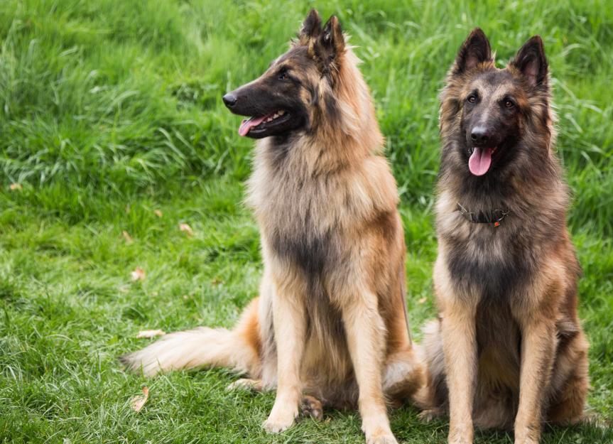 The Belgian Malinois and Belgian Tervuren are both considered Belgian shepherds and have similar body types, intelligence, and energy levels. The main difference between the two breeds is their coat: The Terv has a long, silky double coat while the Malinois has shorter fur.